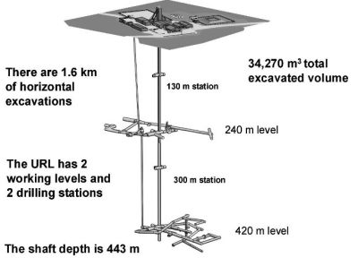• Figure 3b: Facilities underground at URL. Figure courtesy of Neil Chandler.