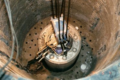 • Figure 9b: Heater - container in an in-floor borehole. Figure courtesy of Neil Chandler.